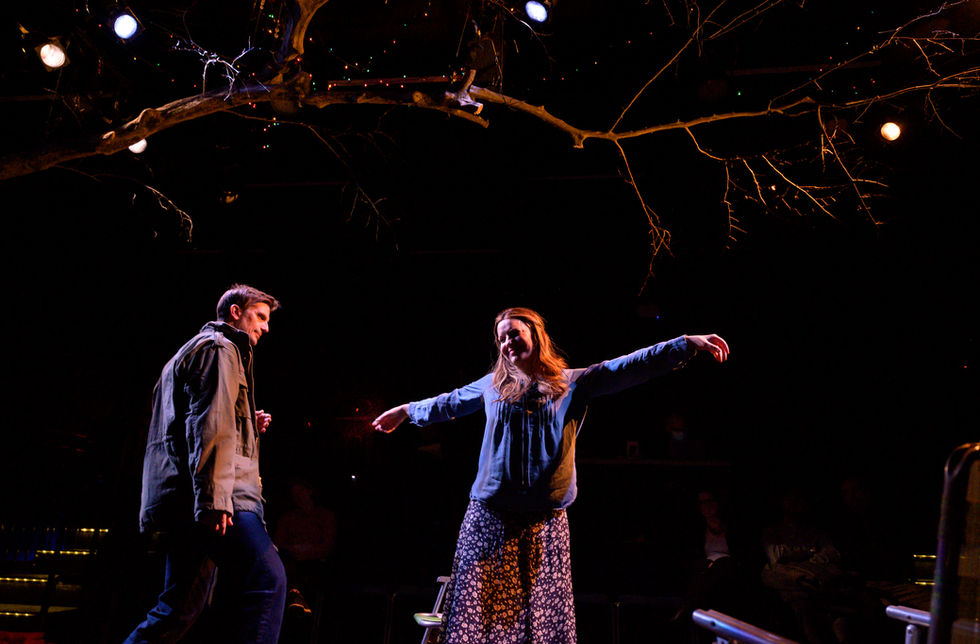 The play features spontaneous group singing, bizarre food, a zither, a silent man wearing a parachute, and an awakening from absurdity to abundance, kindness to connection.